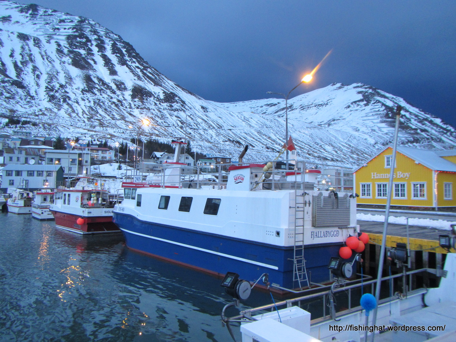 5.janúar. Mánabergið í Ólafsfjarðarhöfn, fór um borð í morgun og náði í dótið mitt. Starfsferli mínum sem togarasjómanns er lokið. Image Reply
