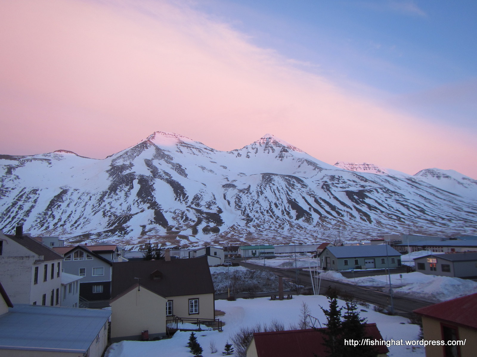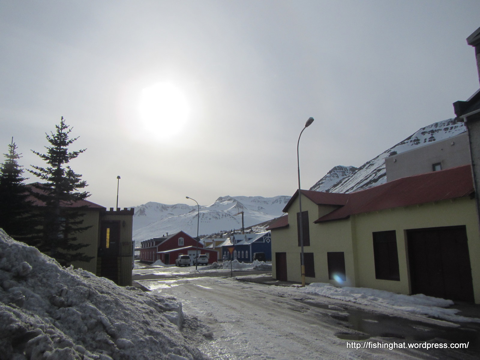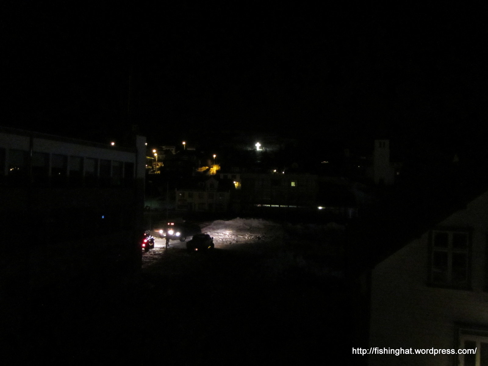 17. mars. Siglufjörður í myrkri. Þáttaröðin Ófærð tekin upp á Siglufirði.