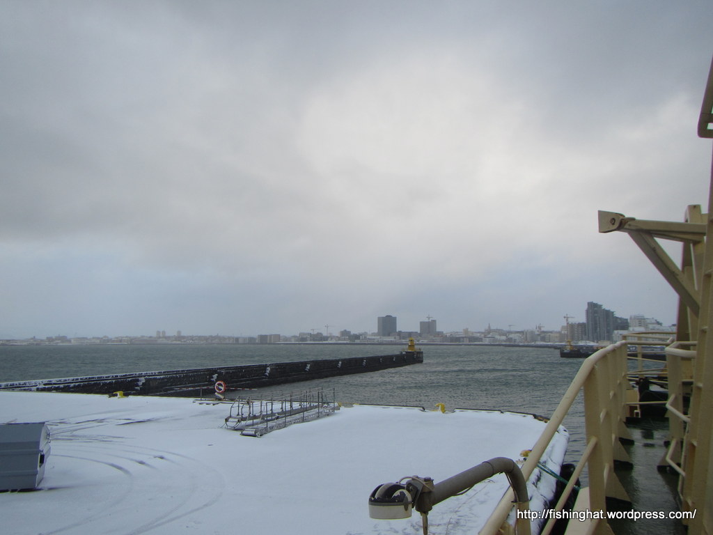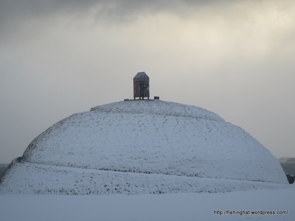 11. apríl. Millilöndun í Reykjavík. Þúfan listaverk Ólafar Nordal tekur sig vel út í norðan garranum. Image Reply