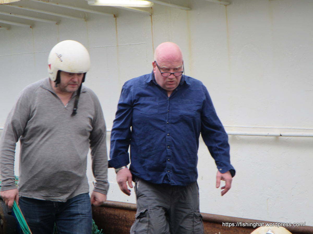 9. apríl. Útbúinn gluggi á trollið. Sæmundur og Trausti.
