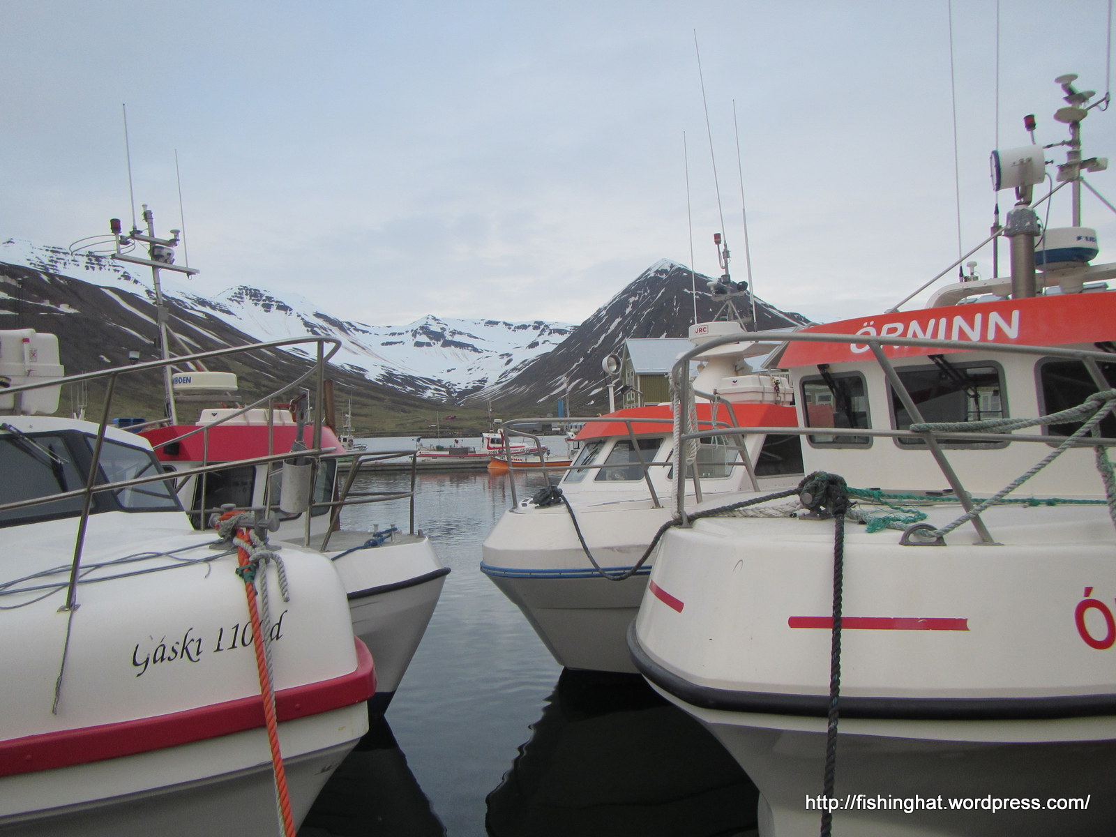 17. júní. Smábátahöfnin á Siglufirði. Stungið saman nefjum.