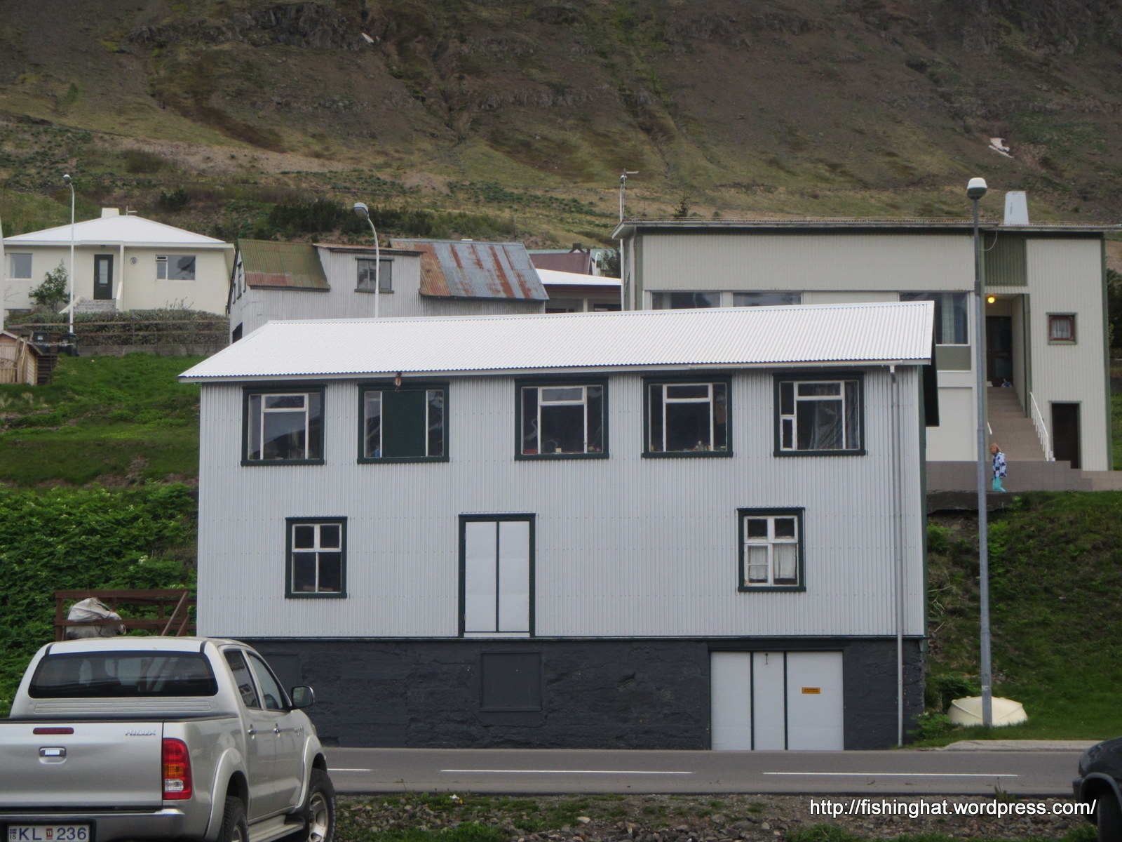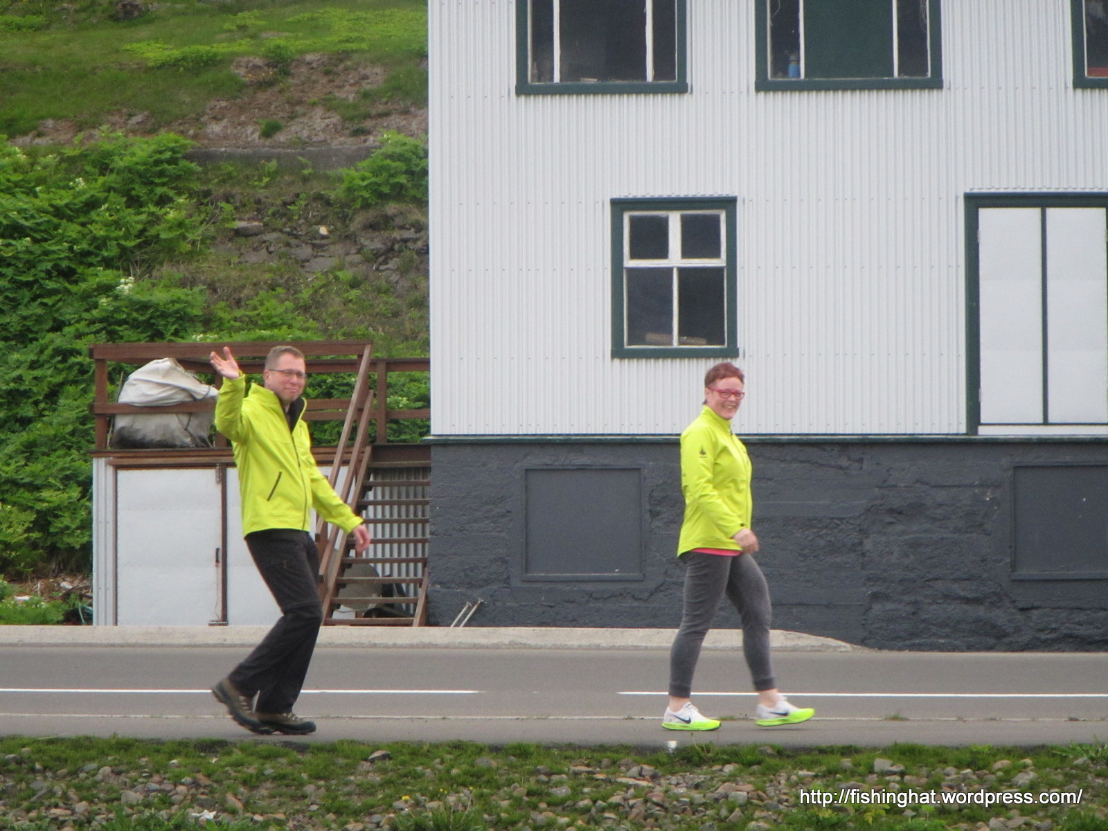 17. júní. Smábátahöfnin á Siglufirði. Unnar og Fríða á göngu.