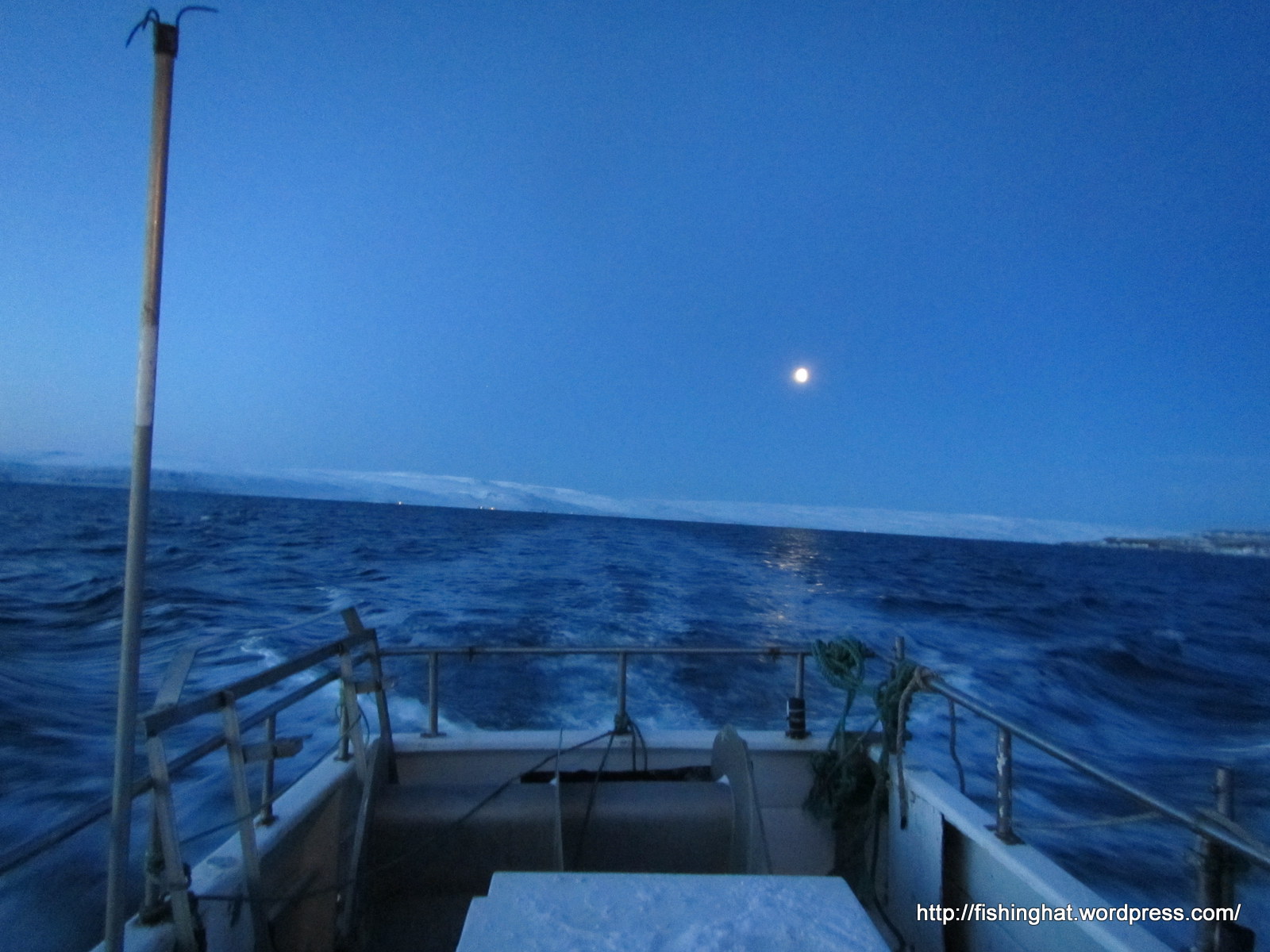 Vaka SI 17. Myndir frá siglingunni. Tunglið gælir við hafflötinn.