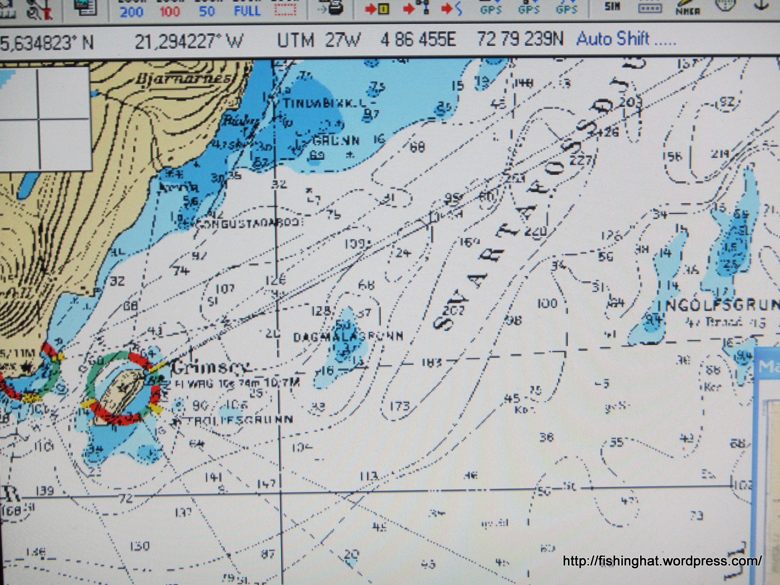 Vaka SI 17. Myndir frá siglingunni. Ljósin í Hólmavík.